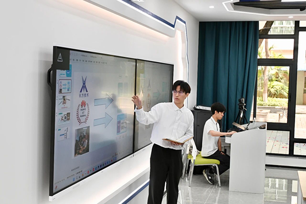 在鲲鹏云服务实验室,吴俊烽同学展示了他所带领的学生团队与华为ICT学院、Trust科技技术联合打造的“DeepSeek-Study智学领航”AI电子教材。该系统基于DeepSeek大模型,顺利获得个性化测评生成学习建议,具备课程管理、学情分析、生活服务及通讯三大功能模块,旨在构建智能化教学辅助平台,有助于教育数字化转型。