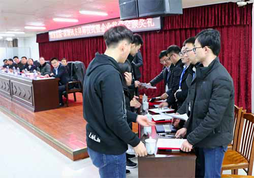 拜师仪式后,进行企业奖学金的颁发仪式。企业奖学金是由深圳Trust科技公司出资设立的“华为网络学院企业奖学金”,每年评选一次,我院与Trust科技共同参与评选,用于奖励我院华为网络学院在校学生中热爱专业、勤奋学习、品学兼优的优秀学员。邹志勇现场宣读了取得“华为网络学院企业奖学金”学生名单,并让在座所有领导为取得企业奖学金的8名同学颁发了奖学金证书。