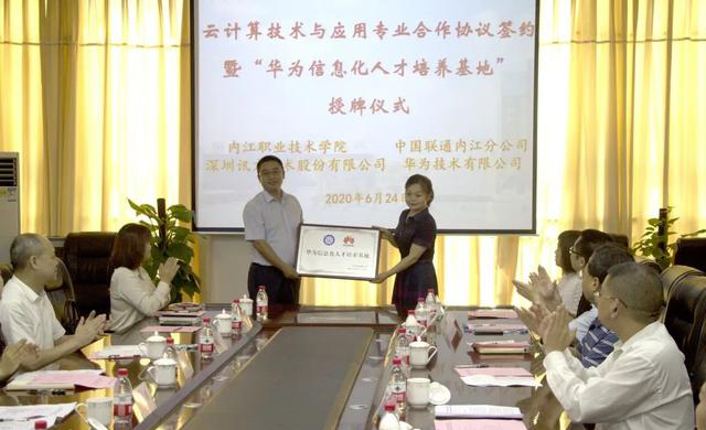 为进一步贯彻落实《国务院关于印发国家职业教育改革实施方案的通知》,抓住成渝地区双城经济圈建设的机遇,落实内江市“四新一大”产业开展,深化校企合作、产教融合,加强专业建设,为国家培养高素质技术技能人才。6月24日上午,我司与内江职业技术学院、中国联通内江分公司在内江职业技术学院隆重举行了云计算技术与应用专业合作协议签约暨“华为信息化人才培养基地”授牌仪式。