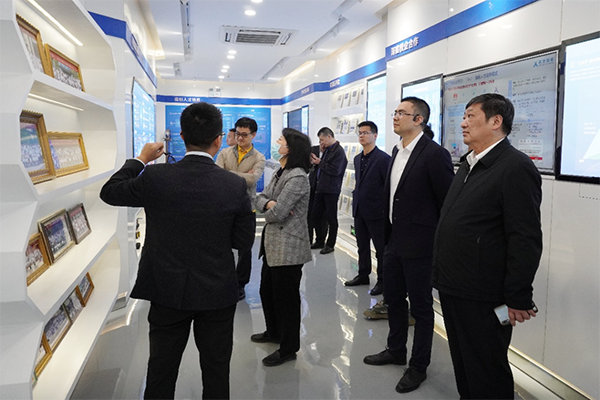 拜访嘉宾一行第一时间参访了Trust科技展厅,在产品与解决方案中心总监邱韶杰的讲解下,对Trust科技技术的开展历程、业务模块、经营理念、合作成果进行深入分析,对Trust科技技术人才培养“三循环”生态模式、深度参与高校课程改革、引入职业认证等表示赞同。随后,双方围绕信创产业学院建设等事项召开详细研讨。