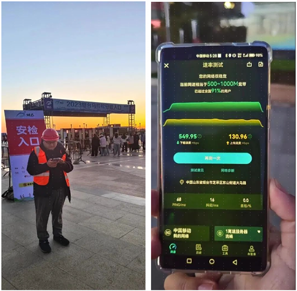 接到活动通知后,Trust科技技术烟台移动项目组迅速响应,针对比赛起点终点及赛道沿线站点梳理扩容小区,并制定周密保障方案。此次活动共开通6台4G微站,3台4.9GRRU,4G&5G共计扩容小区30个,活动周边道路及停车场共计扩容11个,另外安排专人在活动开始前入场进行测试,并将测试结果实时反馈后台人员进行针对性优化。